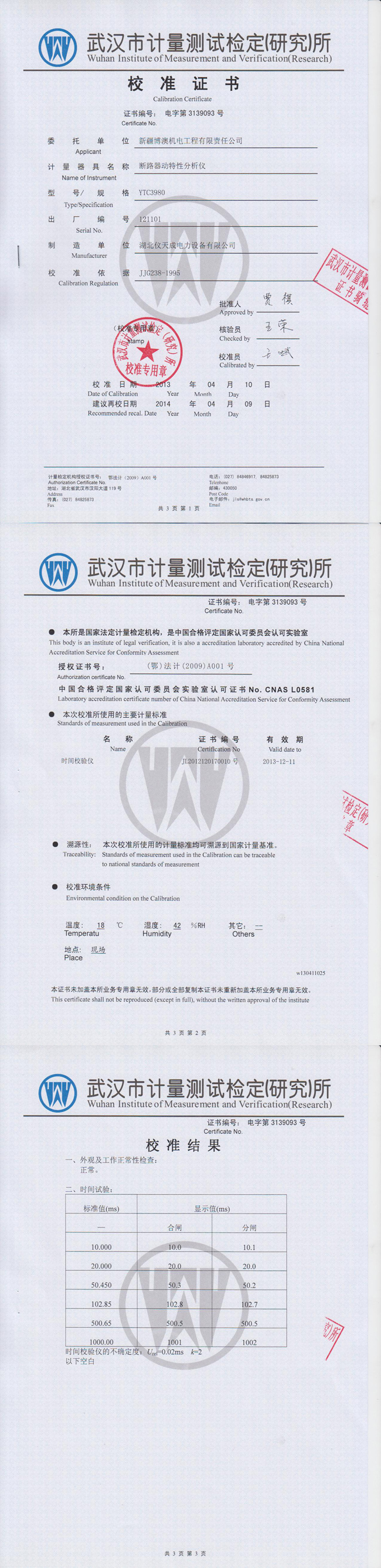 轉(zhuǎn)載:"YTC3980斷路器動(dòng)特性分析儀資質(zhì)證書(shū)" 請(qǐng)注明來(lái)源于儀天成電力。 更多技術(shù)問(wèn)題請(qǐng)致電儀天成電力客戶服務(wù):027-87876585,技術(shù)部專線:027-87876585,在線客服:719388481