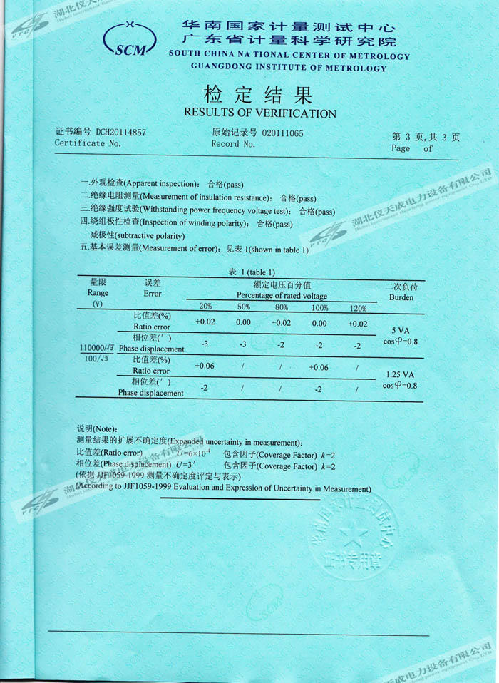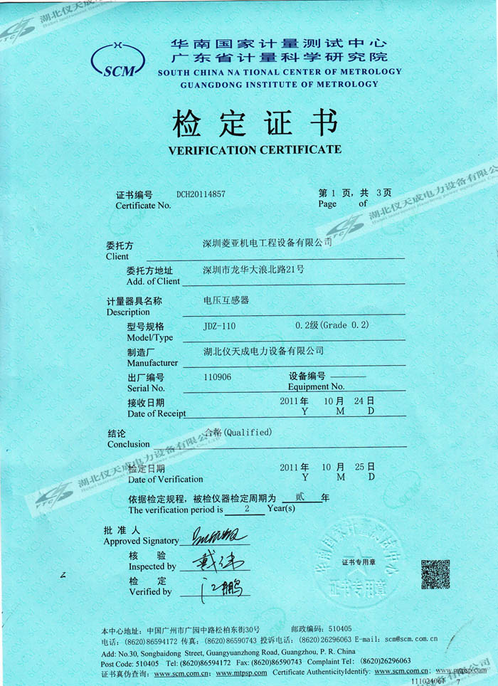 轉(zhuǎn)載:"JDZ-110電壓互感器的資質(zhì)證書" 請注明來源于儀天成電力。 更多技術(shù)問題請致電儀天成電力客戶服務(wù):027-87876585,技術(shù)部專線:027-87876585,在線客服:719388481